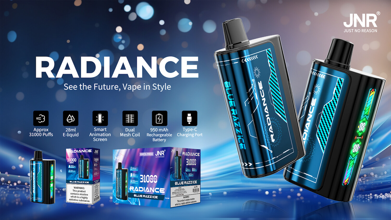 Ontdek de JNR Radiance, de nieuwste high-end wegwerp vape met een futuristisch smart animation display, 31.000 puffs en ongeëvenaarde prestaties. Uitgerust met een krachtige dual mesh coil voor een intense smaakbeleving en een USB-C oplaadbare 950mAh-batterij. Direct verzonden vanuit onze magazijnen in Nederland en België.
